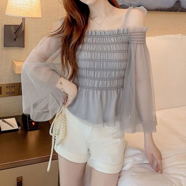 〈2Color〉シアーペプラムオフショルダーブラウス M1-0316