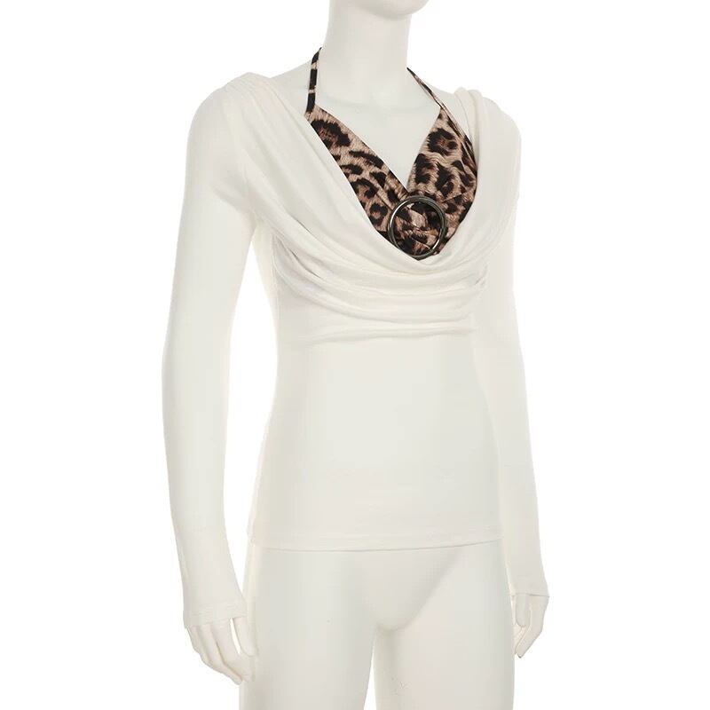 大胆なホルターネックとレイヤード風デザインで、一枚でオシャレ上級者見えする フェイクツーピースホルターネックトップス。