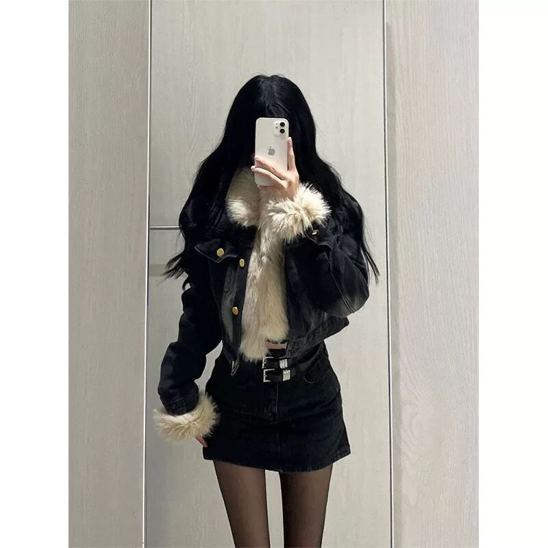 クロップド丈ファーエッジデニムジャケット M2-0284