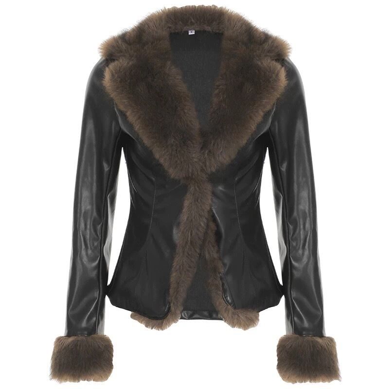 リッチ感漂うブラウンのPUレザーに、ボリューミーなファーをあしらった存在感抜群の1枚。ショート丈やミニボトムと合わせれば、一気に華やかでセクシーな印象に。秋冬の主役アウターとして、周りと差がつくギャルコーデを完成させてくれるアイテム。