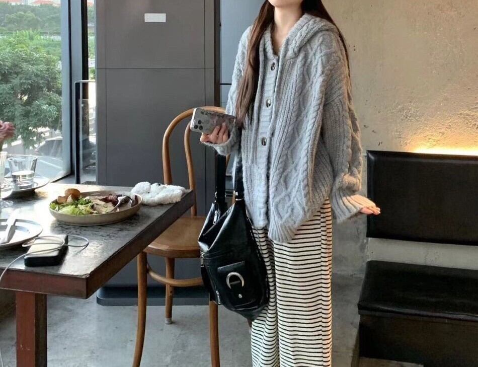 〈2Color〉ケーブル編み フーディーニットコート M3 -0010