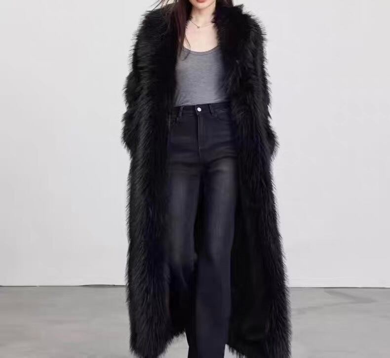 ノーカラーブラックスーパーロングコート M3 -0011
