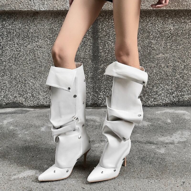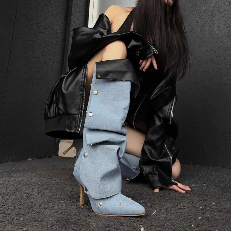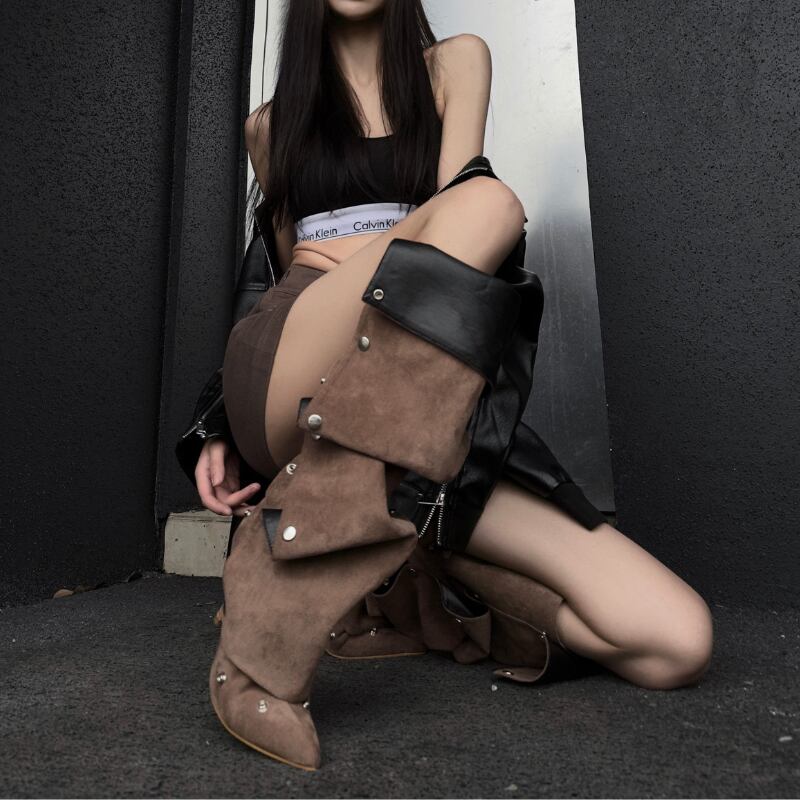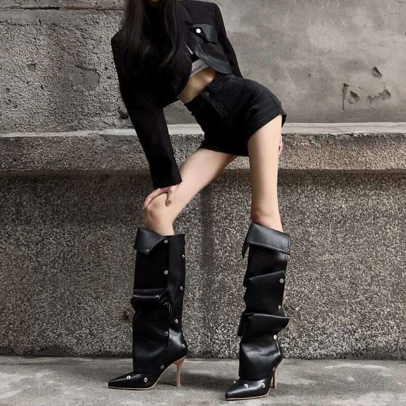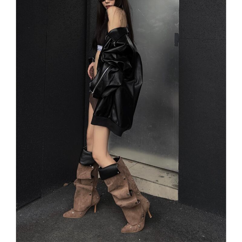 ポインテッドトゥ×ヒールで脚のラインを美しく見せつつ、ルーズ感が太もも〜ふくらはぎを自然にカバー。