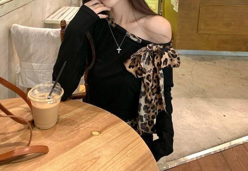 大胆なワンショルデザインに、レオパード柄のビッグリボンをあしらった“色気×可愛さ”を両立した主役トップス。