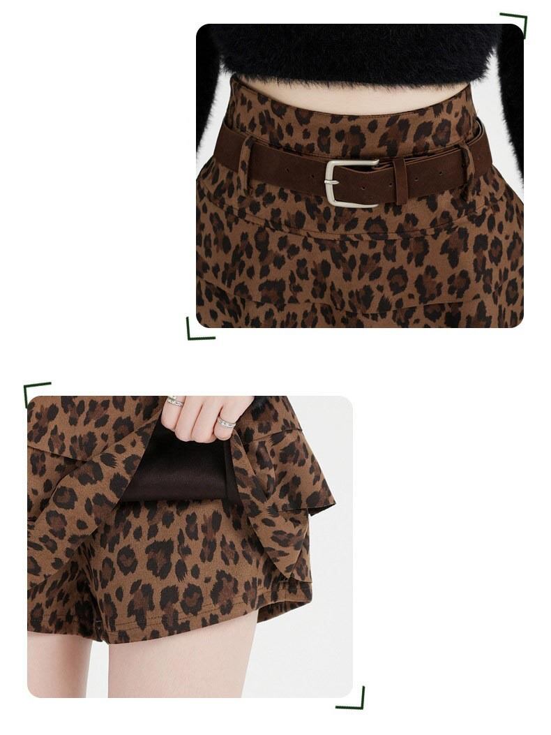 レオパード柄 ベルト付きレイヤード風ショートパンツ M3 -0147