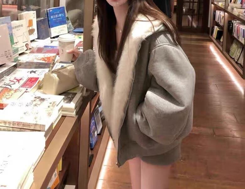 思わず触れたくなるような、たっぷりとしたフェイクファーが魅力の一着です。丸みのあるオーバーサイズシルエットが、女の子らしい「ゆるふわ」な可愛さを引き立てます。
