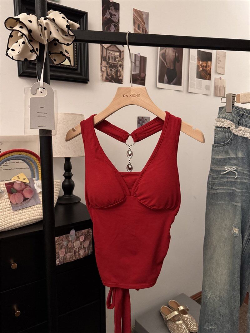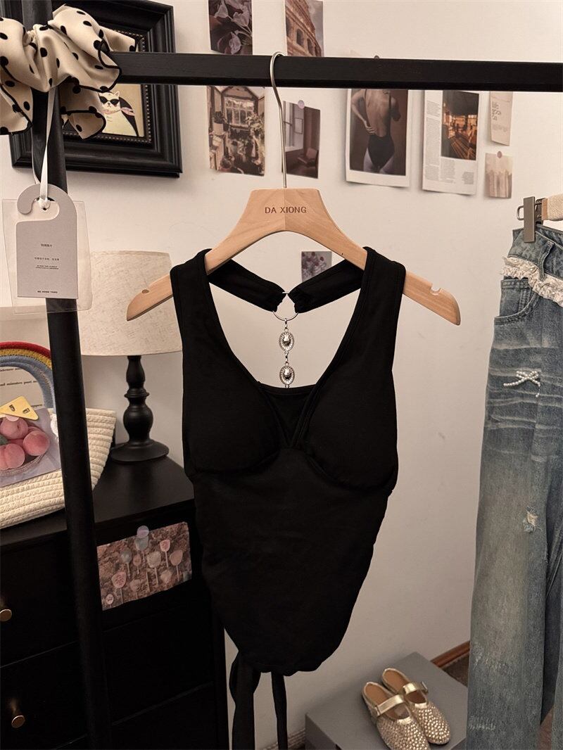 〈4Color〉ビジューチェーン&バックリボン タンクトップ M3 -0042