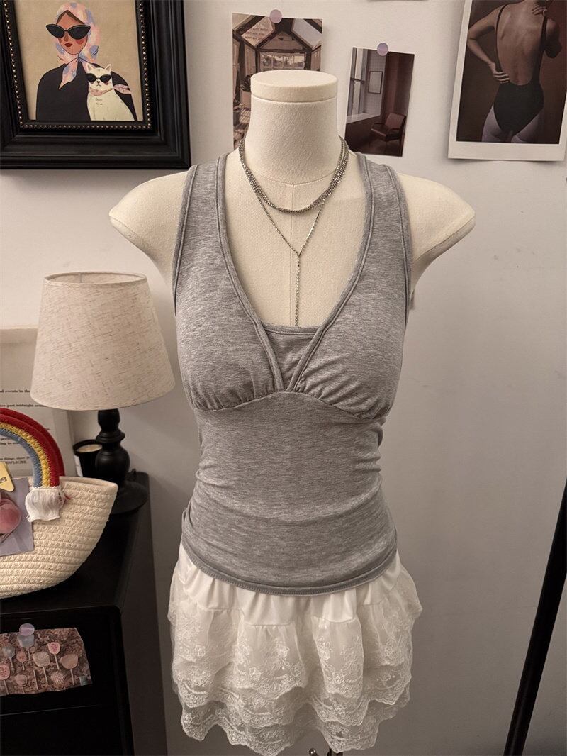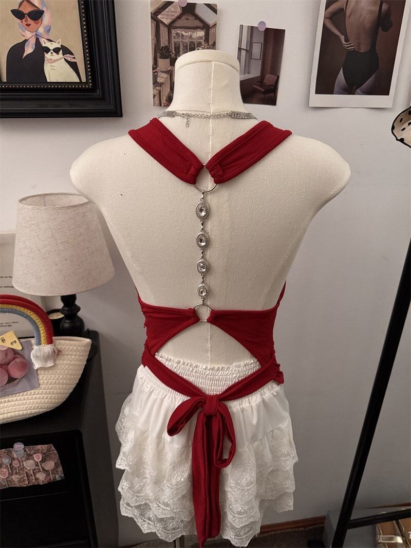 フロントはシンプルながら、バックスタイルに圧倒的なこだわりを詰め込んだ主役級トップス。繊細なビジューの煌めきと、ルーズに結んだリボンが、ヘルシーかつセンシュアルな魅力を引き立てます。