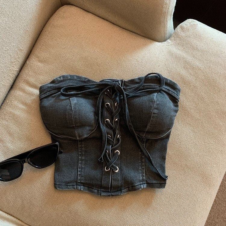 〈2Color〉フロントレースアップ デニムコルセット ビスチェ M3 -0062