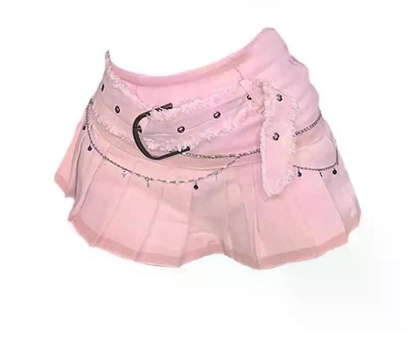 トレンドのY2K・パンク要素を詰め込んだ、主役級のマイクロミニスカート。 甘すぎない「青みピンク」と、無骨なベルトデザインのバランスが、令和の大人ギャルにぴったりの一着です。存在感のある太めのベルトが、ウエストラインを強調。腰穿き(ローライズ)スタイルで、ヘルシーな肌見せとこなれ感を演出します。