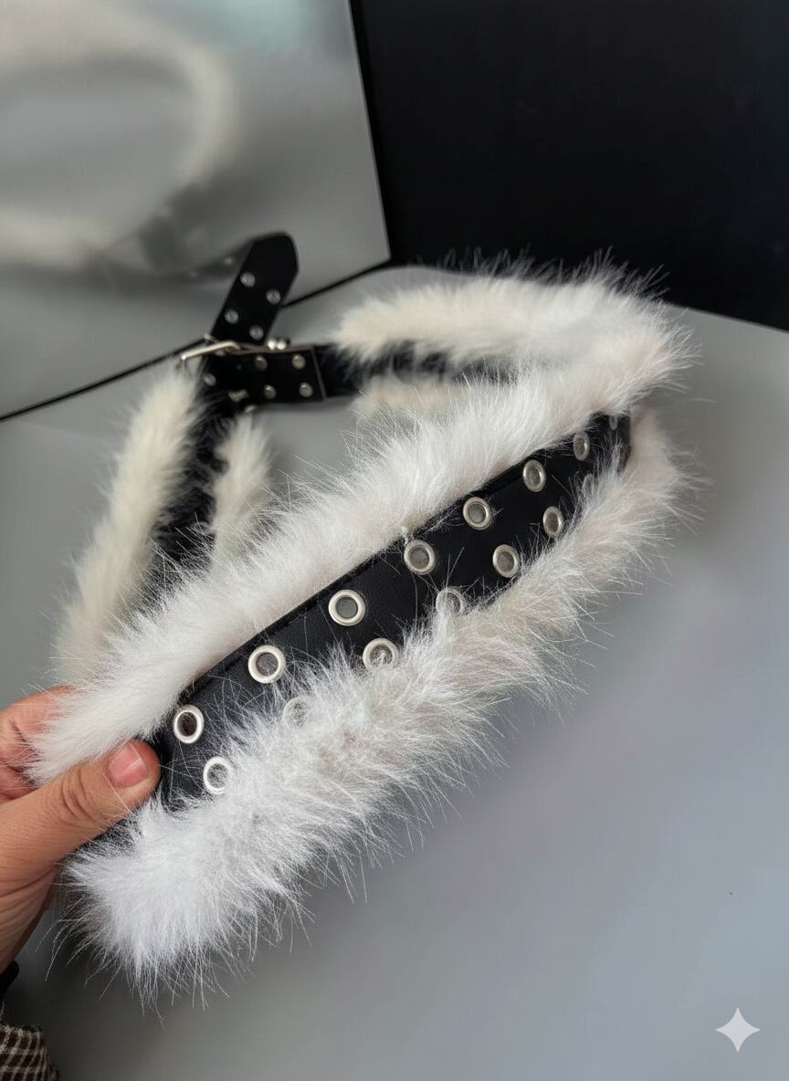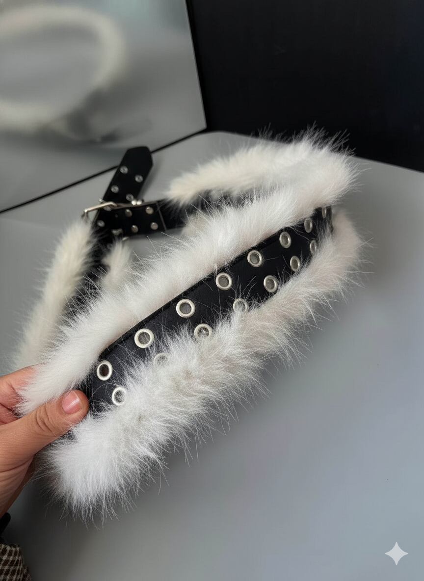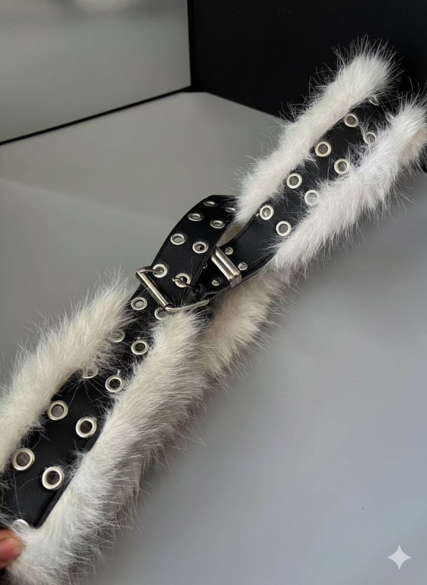 ダブルバックル ワイド レザー×ファーベルト M3 -0073