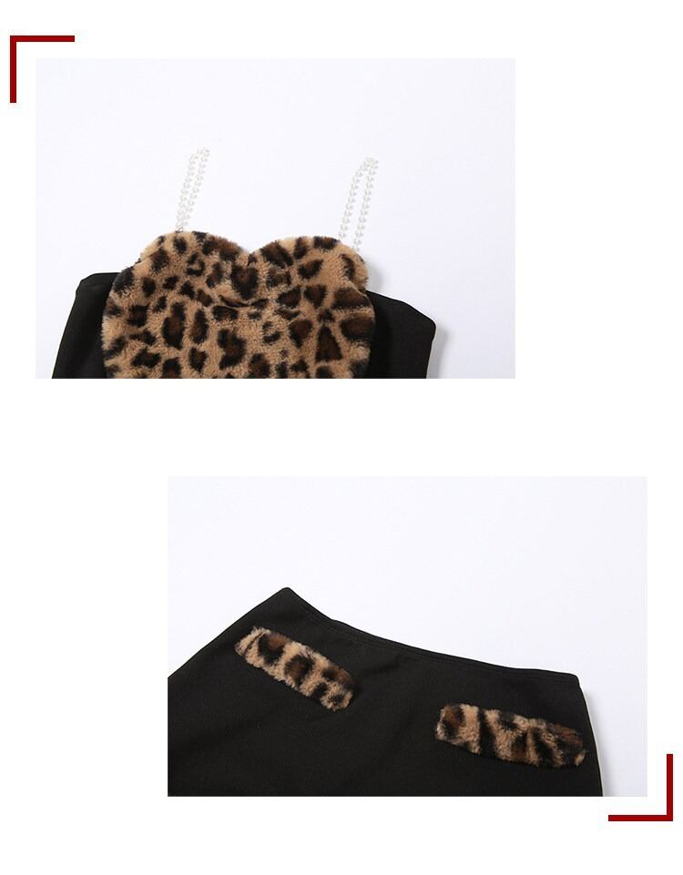 ボレロ、ハート型キャミソール、ミニスカートが一つになった、圧倒的な存在感を放つ3点セット。 シックなブラックに、エッジの効いたレオパードファーをあしらい、大人ギャルならではの「強めな可愛さ」を表現しました。