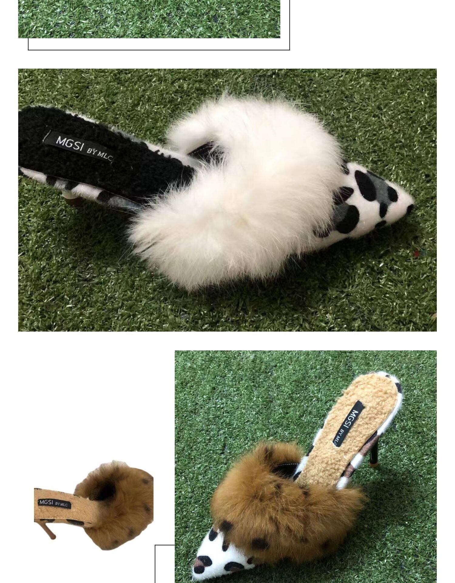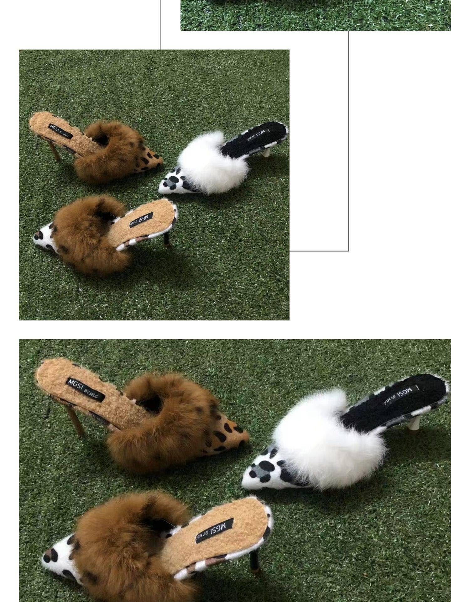 <3Color>アニマル柄×異素材ファー ポインテッドトゥ ミュール M3 -0097