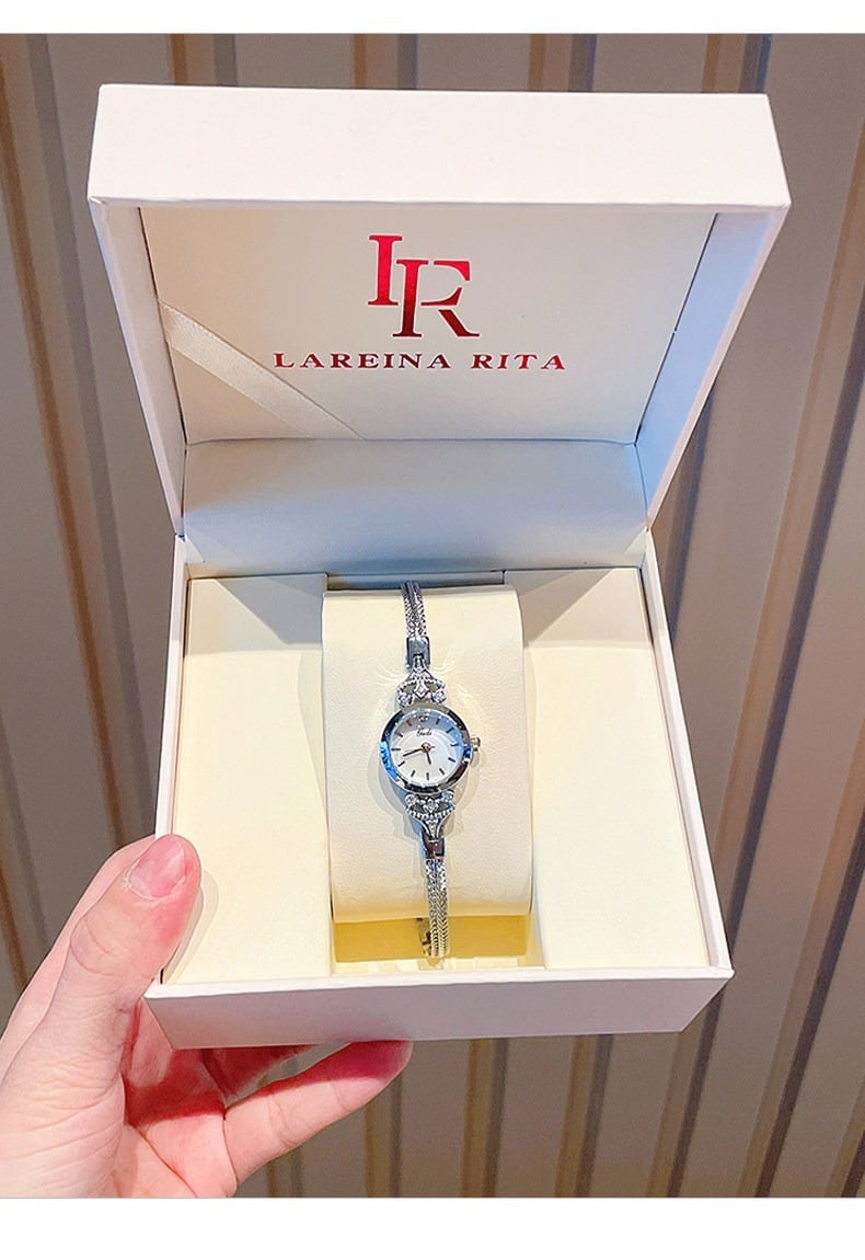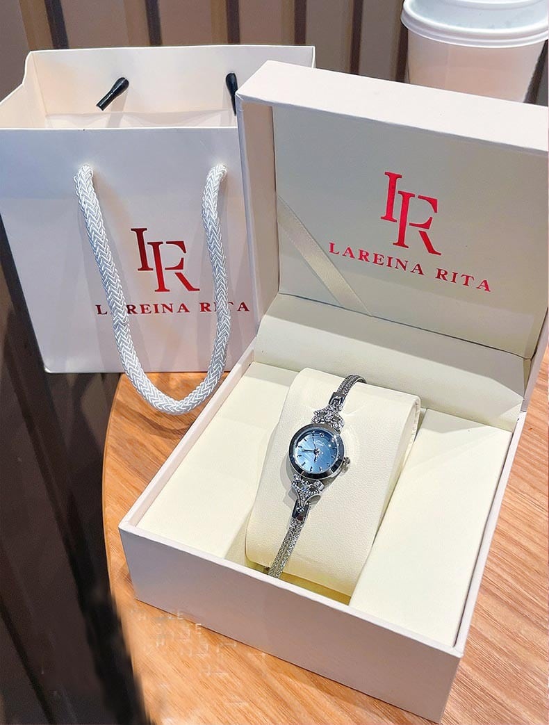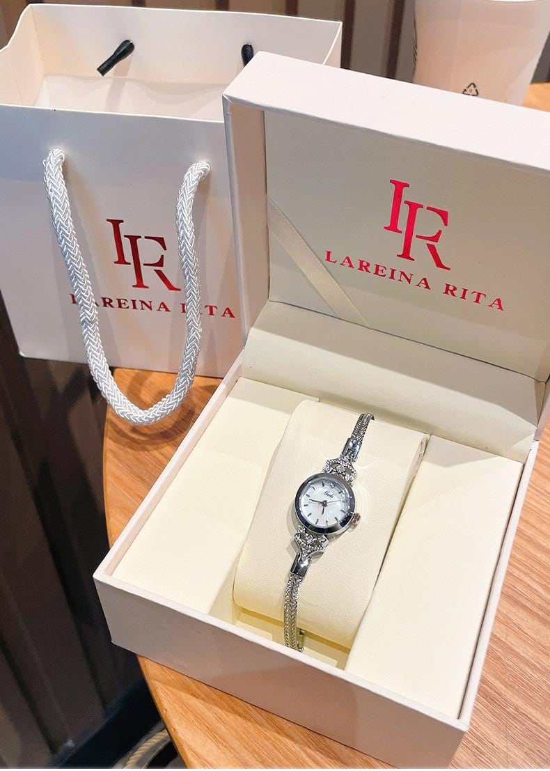 ジュエリー感覚で身につけられるLAREINA RITAの新作は、媚びない強さと、溢れ出る気品を兼ね備えた、まさに大人ギャルのための勝負時計です。細身のメッシュベルトに、フェイスを縁取る大粒のビジュー。動くたびに光を捉えて、シャンパンの泡のように繊細に輝きます。