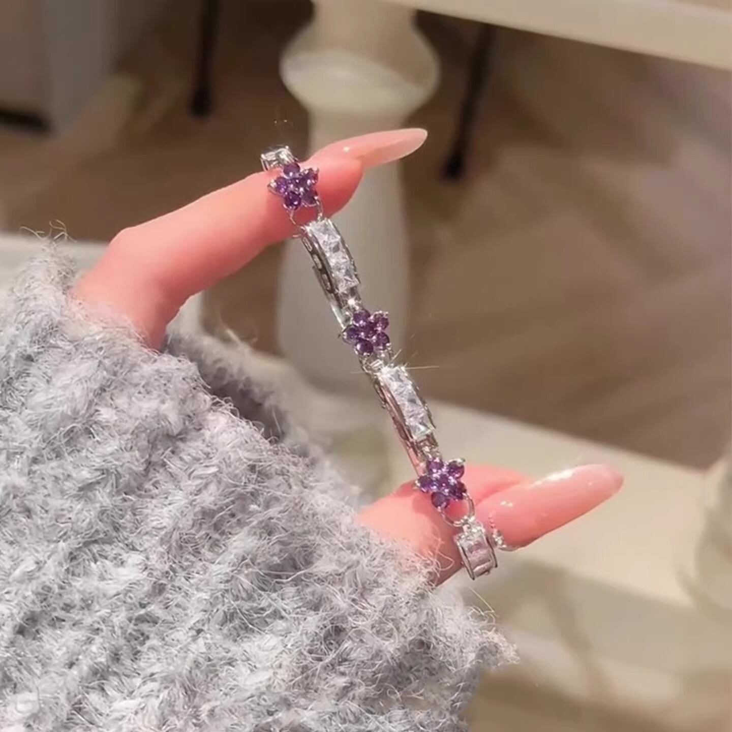 動くたびにキラキラと眩い光を放つ、フラワーモチーフのビジューブレスが登場。