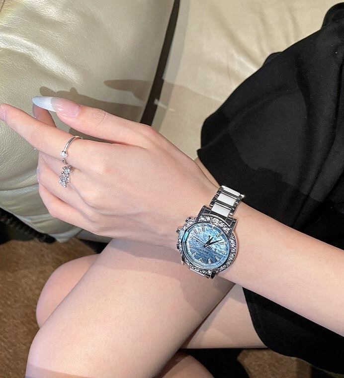 <3Color>ぎっしりビジュー×オーロラ文字盤・セラミックウォッチ M3 -0118