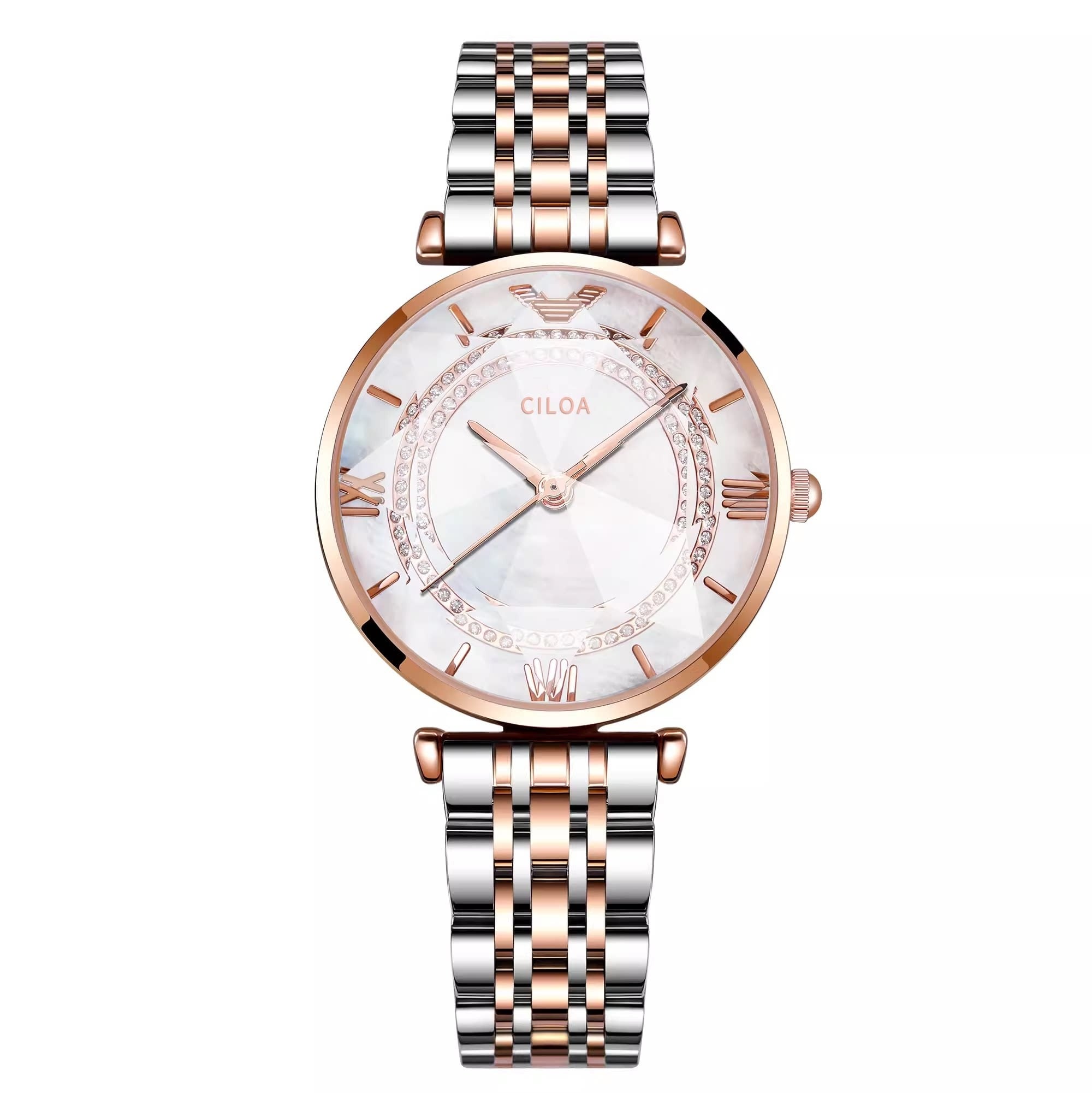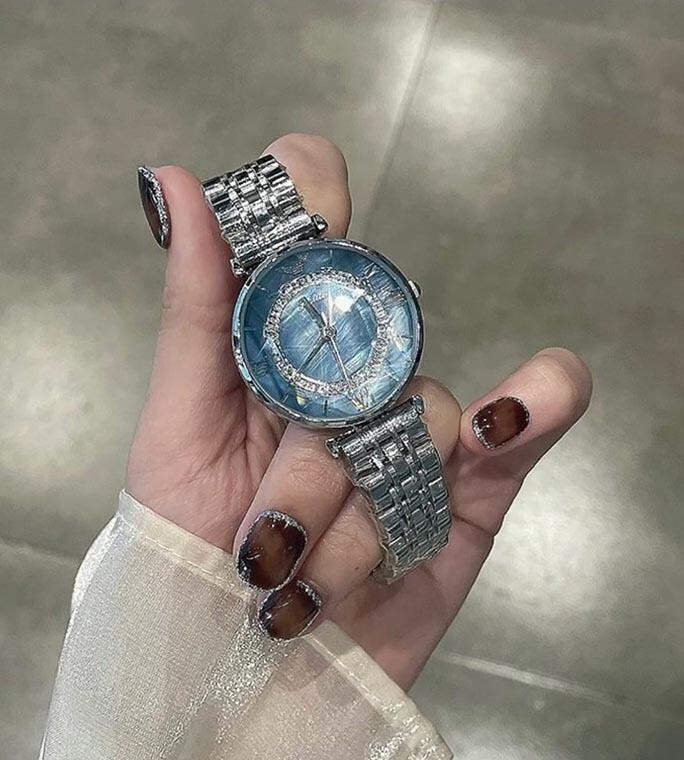 上品に艶めくマザーオブパールの文字盤と、贅沢に敷き詰められたビジューが、あなたの日常をドラマティックに塗り替えます。