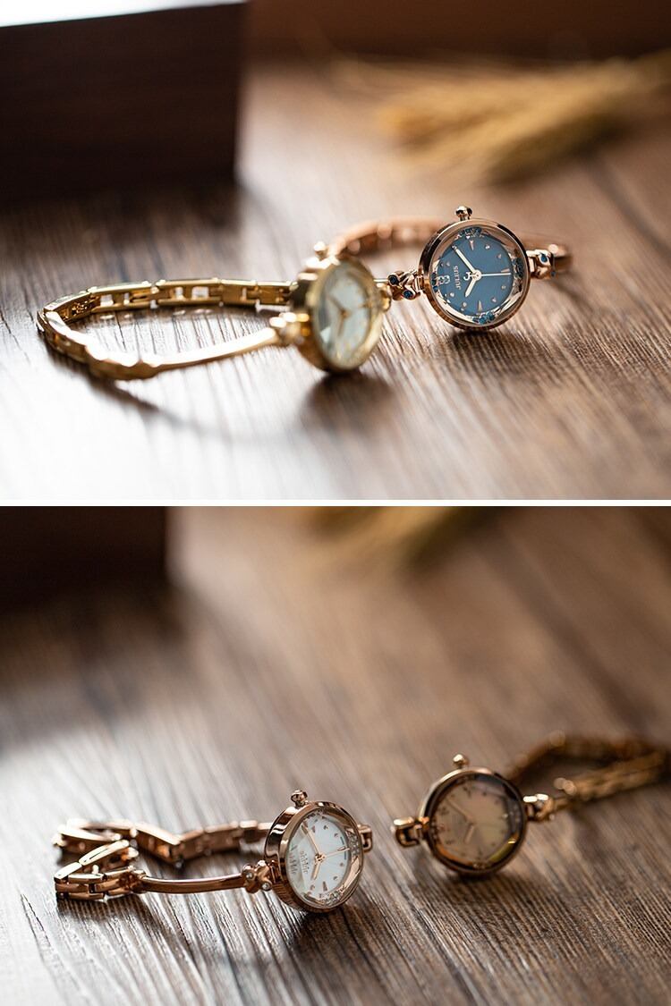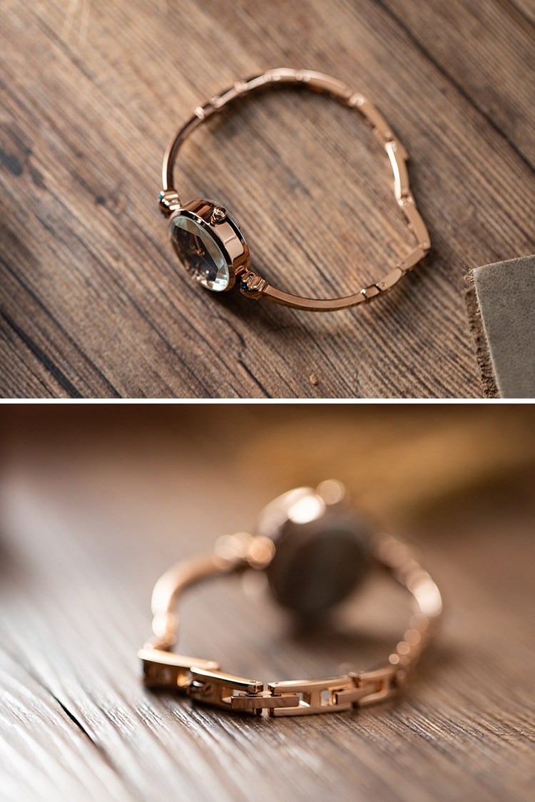 極細のバングルタイプなので、手首を細く、しなやかに見せてくれます。時計が苦手な方でも、ブレスレット感覚でさらりと身につけられるのが魅力。