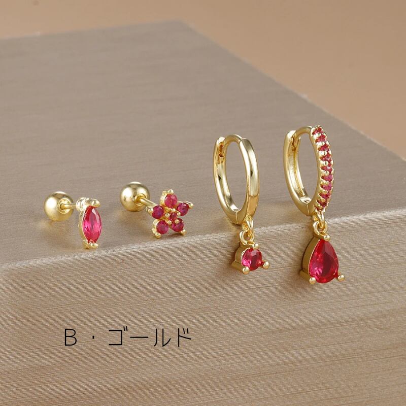 〈4Color〉ジルコニアピアス 4ピースセット M3 -0358