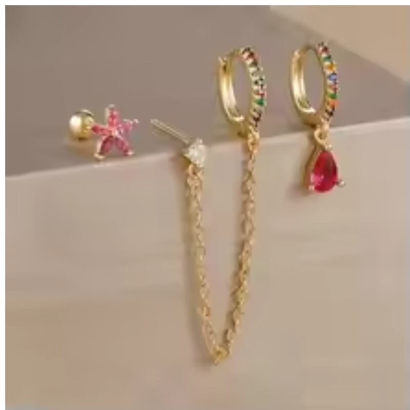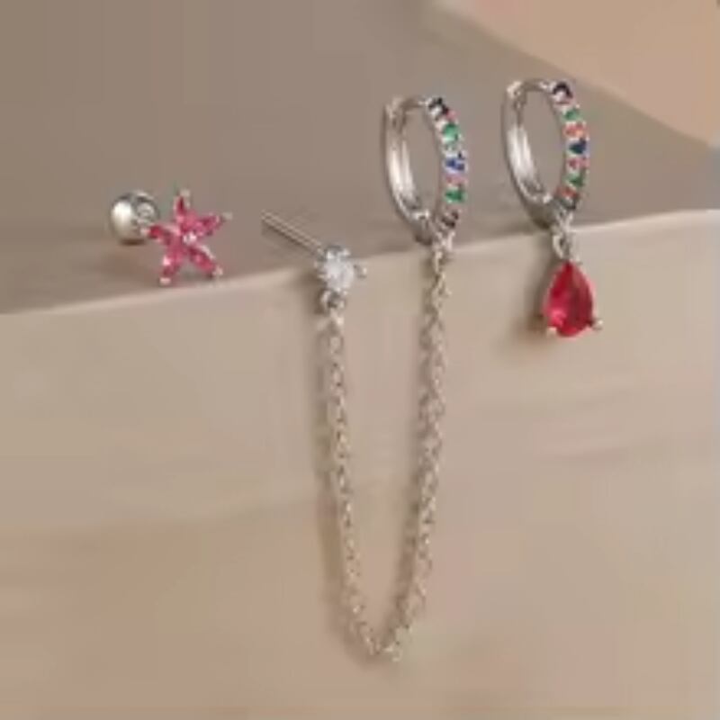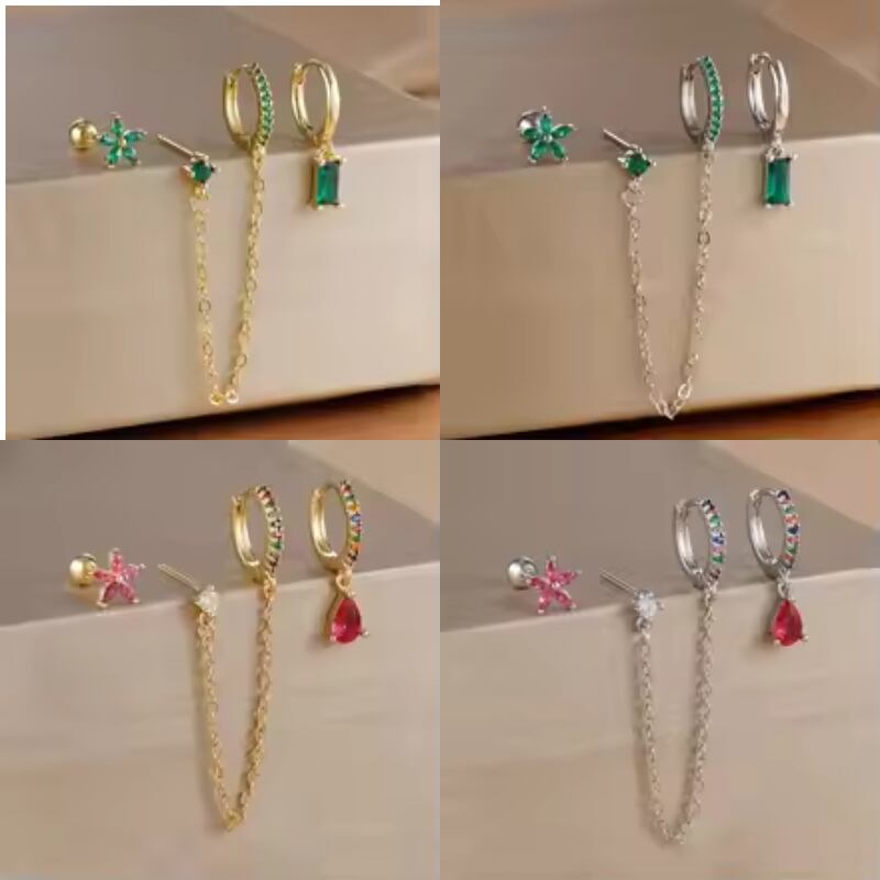 〈4Color〉チェーンピアス 3ピースセット M3 -0359