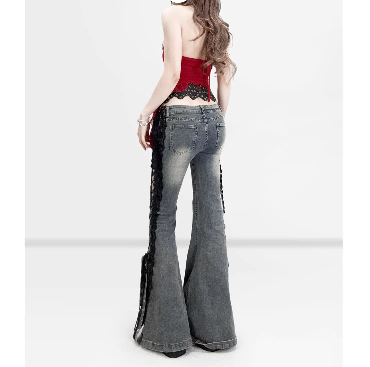 脚線をキレイに魅せるフレアシルエットに、サイドのレースアップで“強さ”と“色気”をプラス。