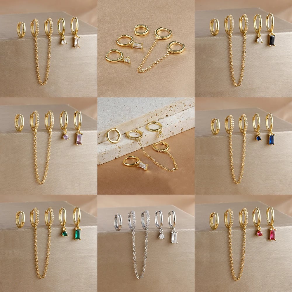 〈10Collar〉ジルコニア×チェーンピアス 4ピースセットM3 -0282