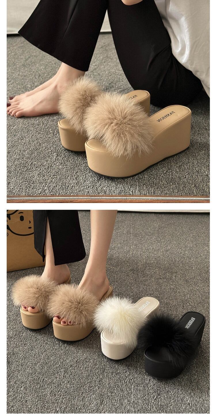 視線を奪うボリューミーなファーと、安定感抜群の厚底ソールを組み合わせた、主役級サンダルが登場。