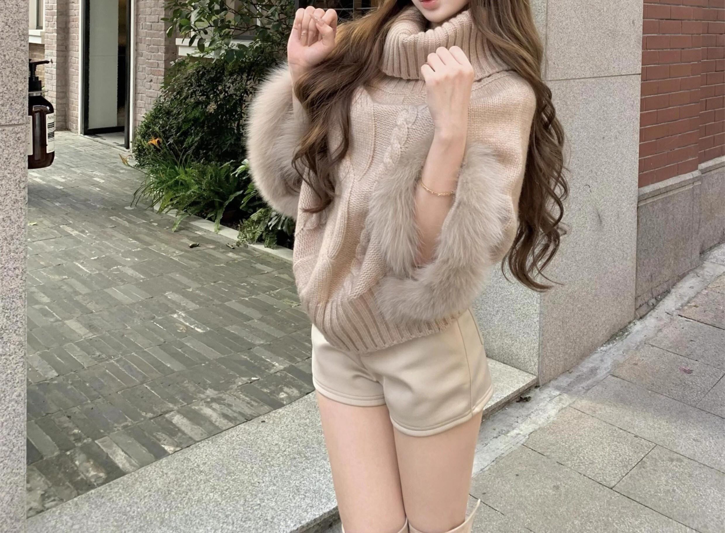 ぬくもりのあるケーブル編みニットに、驚くほどボリューミーなファーを袖口にあしらった、ラグジュアリーな1着が登場。