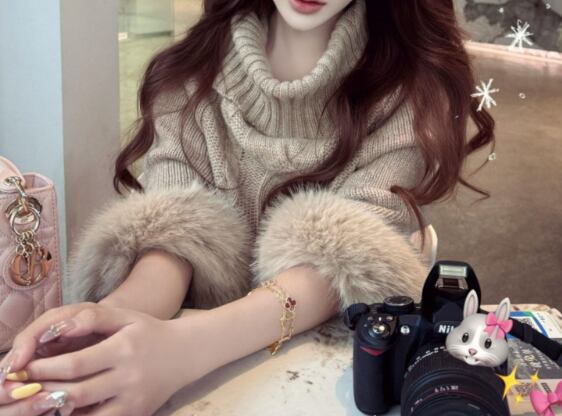 落ち着いたベージュカラーが、大人ギャルの持つ「余裕」と「女っぽさ」を存分に引き出します。顔周りを暖かく包み込むタートルネックで、機能性もデザイン性も妥協しない冬の最強トップスです。