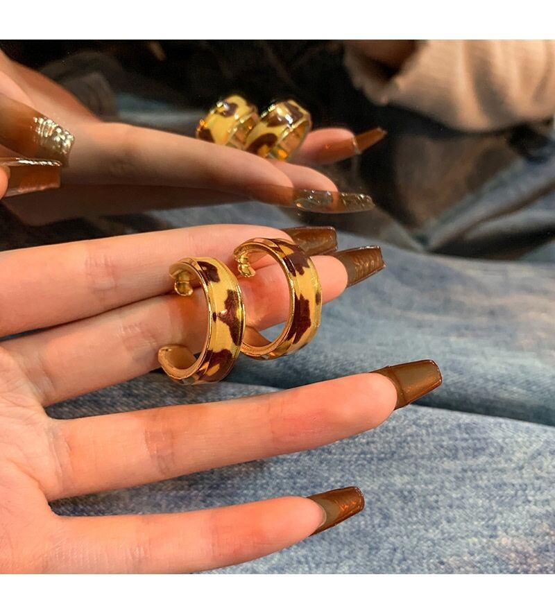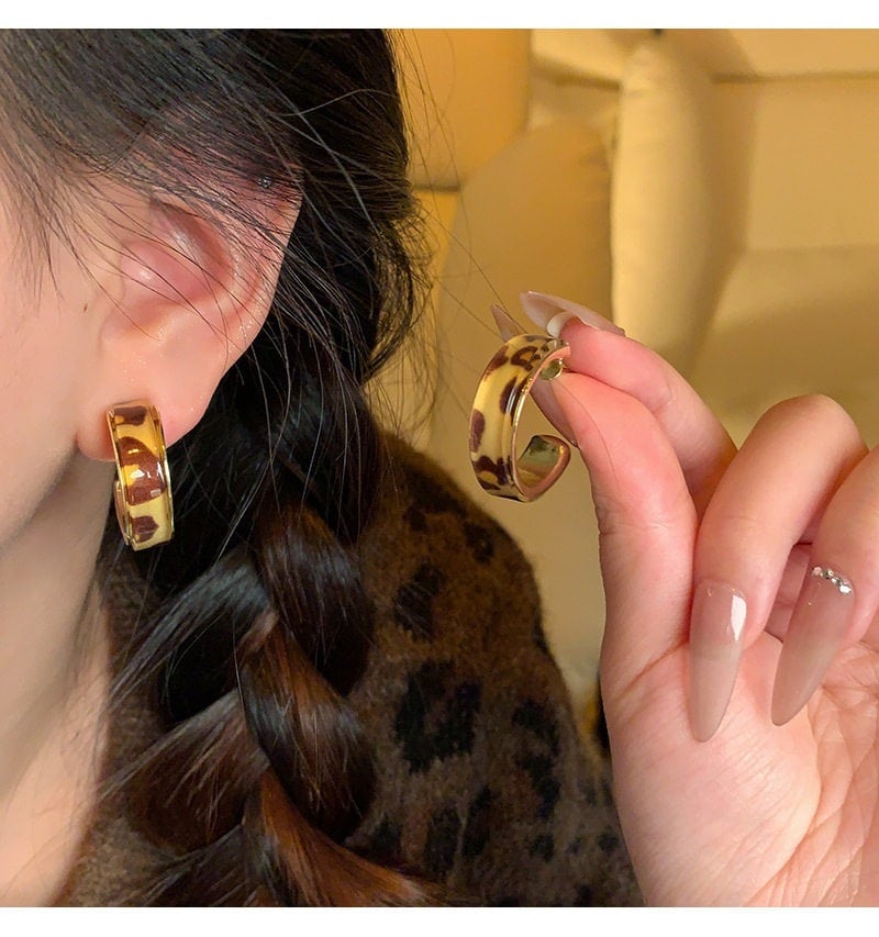 艶やかなレオパード柄をゴールドのフレームで包み込んだ、リッチな重厚感のあるフープピアス。