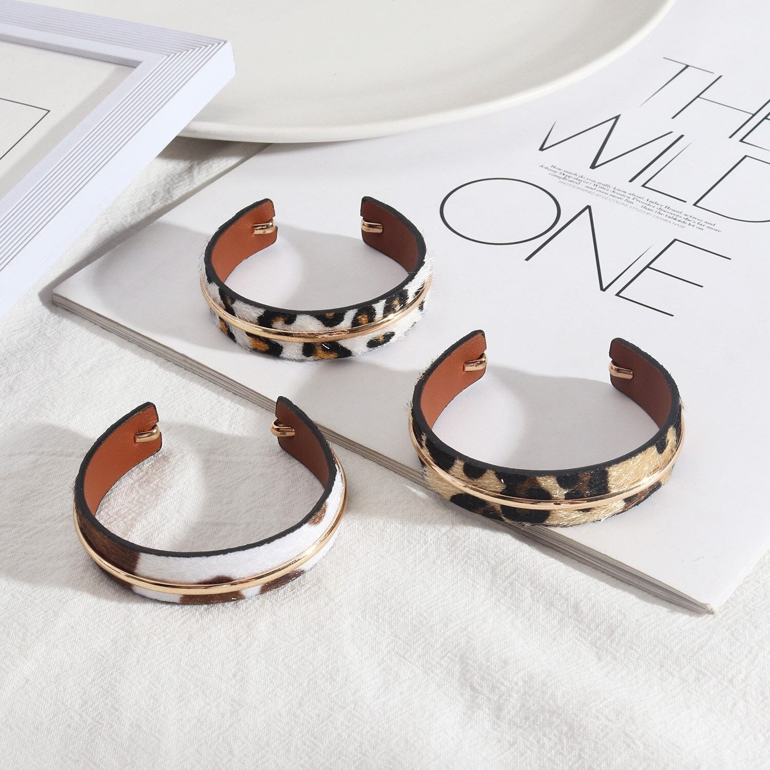 【2個セット】〈5Color〉ハラコ×ゴールドラインのアニマルカフバングル M3 -0192