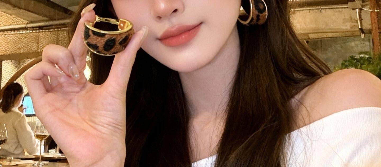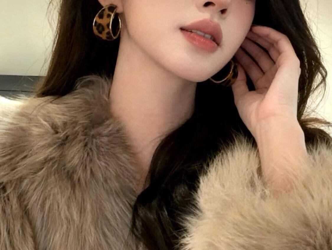 存在感のあるレオパード柄を、温かみのあるハラコ調の質感でリッチに仕上げたワイドフープピアスです。
