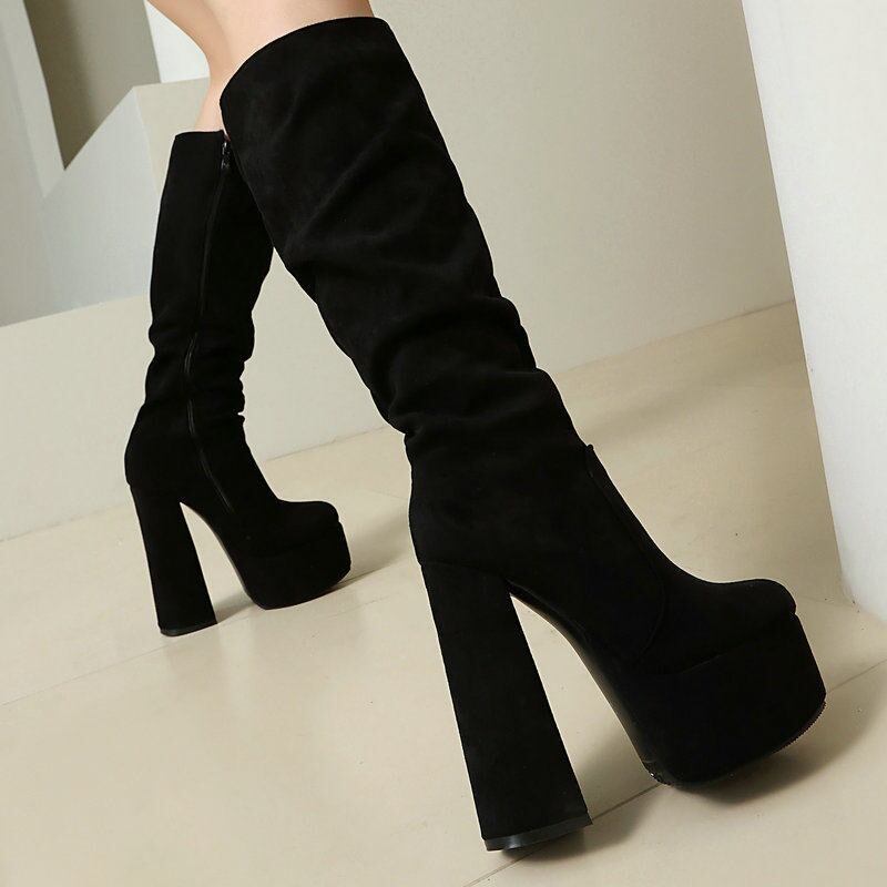 今季のトレンドを凝縮した、14.5cm超厚底チャンキーヒールロングブーツが登場。