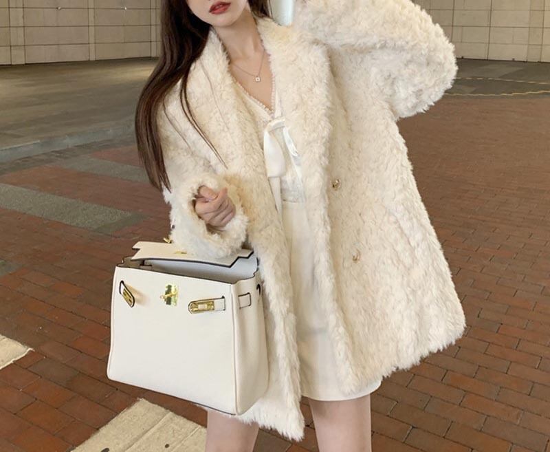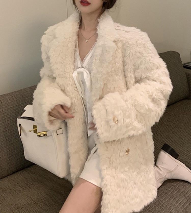 〈2Color〉金ボタン付き・テディベア風フェイクファーコート M3 -0220