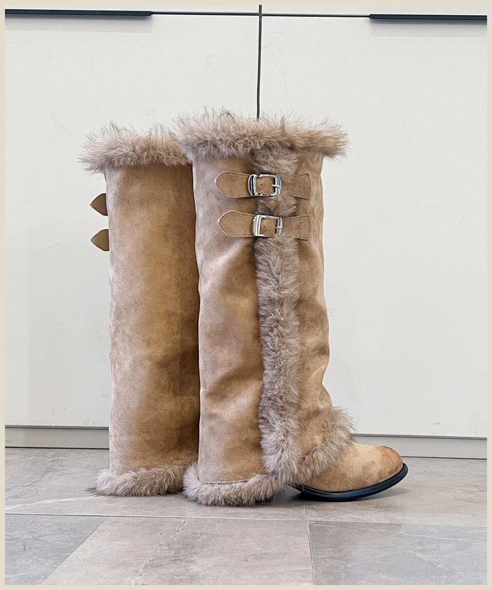 「シルエットで遊ぶ、冬の主役級足元。贅沢ファー×ベルトデザインで叶える究極の大人可愛さ」