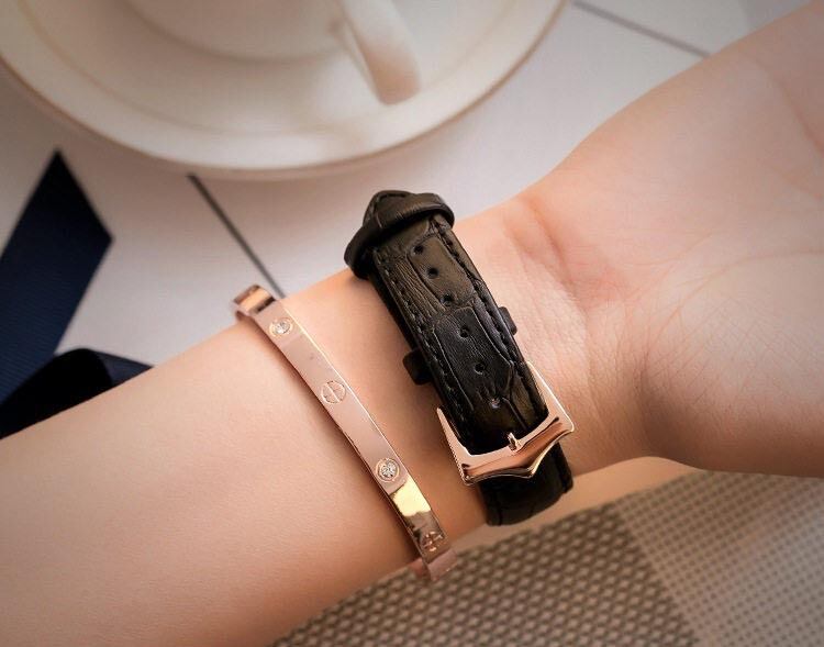 高級感漂うクロコ型押しベルト:ベルトには本革のような質感のクロコ型押しレザーを採用。ゴールドのケースとの組み合わせが、大人ギャルな装いに品格をプラスします。