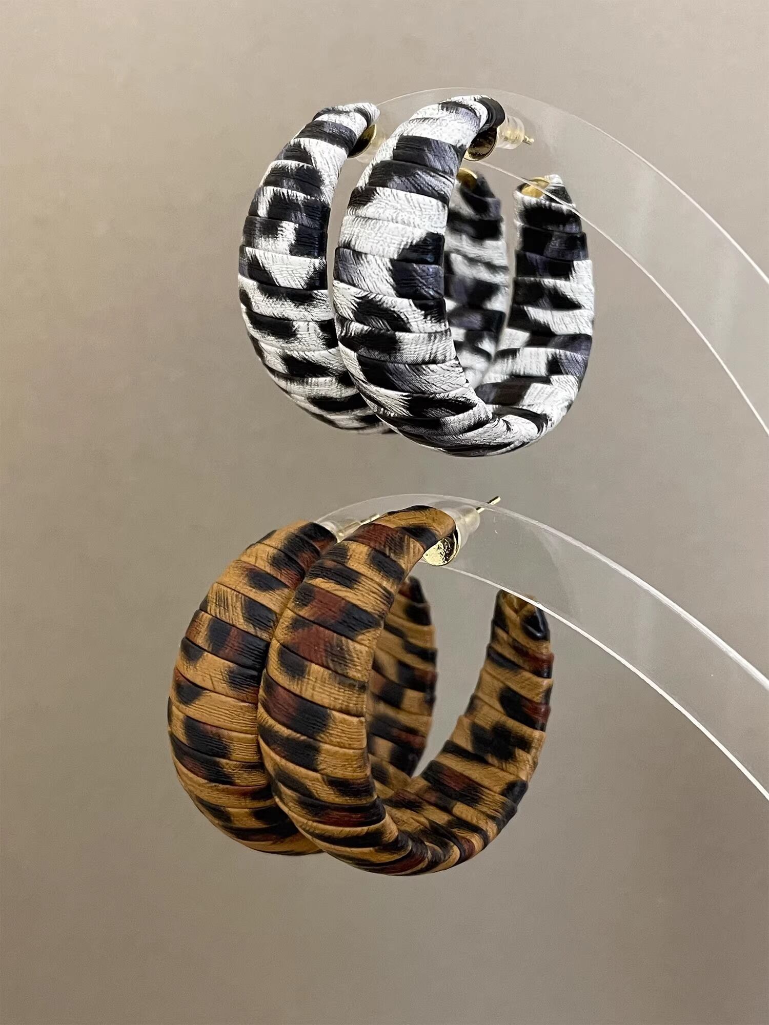 シンプルになりがちなスタイリングを一気に格上げする、超ワイドなチャンキーフープピアス。エッジの効いたアニマルパターンを質感豊かな編み込みデザインで仕上げることで、強めなギャルマインドと、洗練された大人のモード感を両立させました。