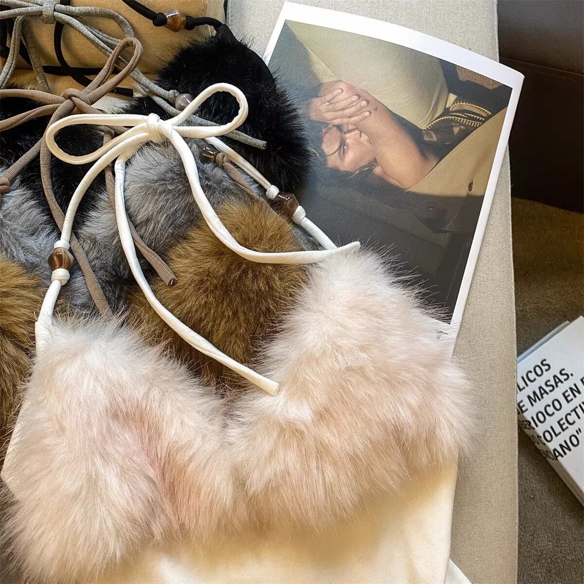 〈4Color〉ボリュームファー ホルターネック キャミソール M3 -0270