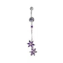〈4Color〉ボディピアス ダブルフラワーモチーフ ロングチャーム M3 -0292