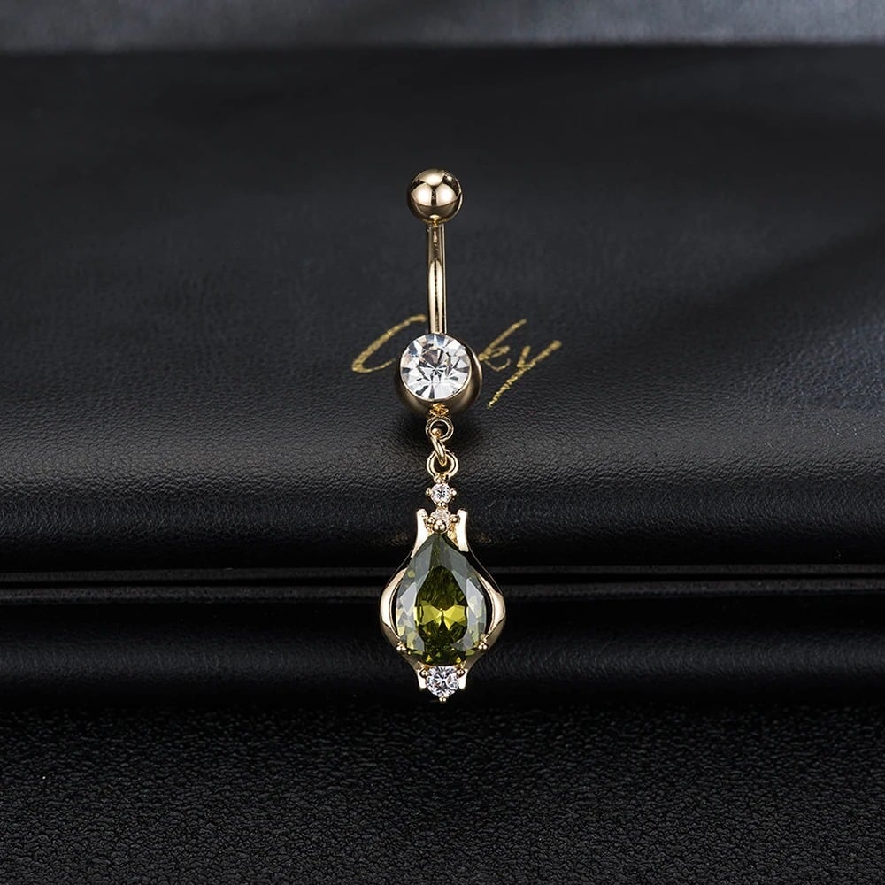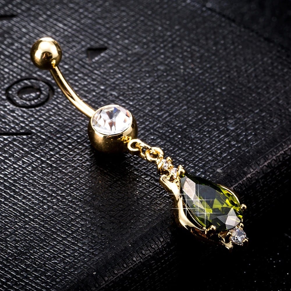 深みのあるジュエルとゴールドフレームのコントラストが美しい、主役級へそピアスが入荷しました。