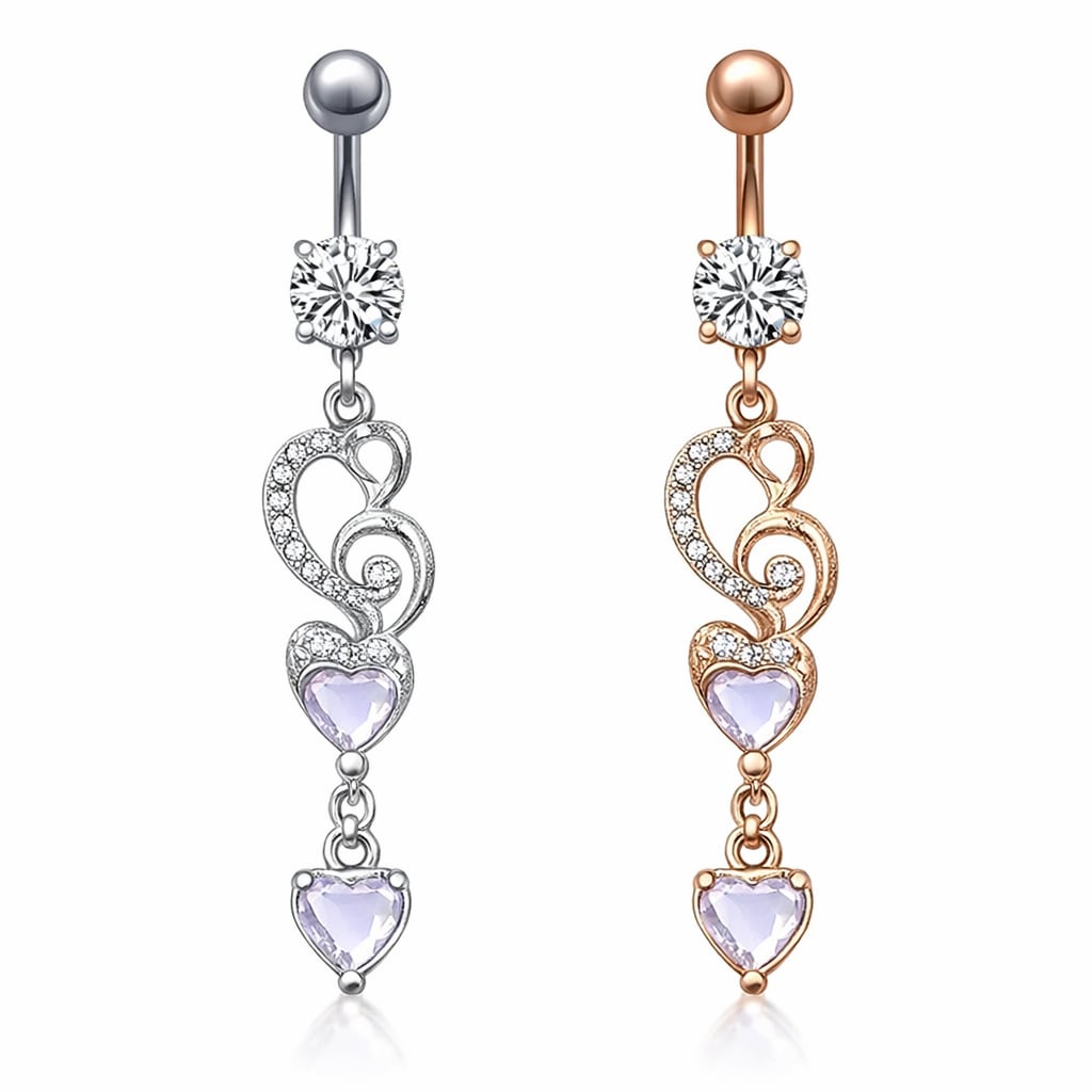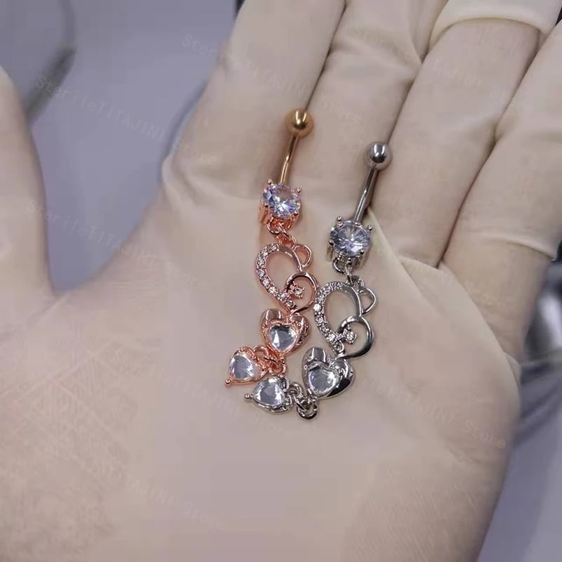 〈2Color〉ラグジュアリー 揺れハート ボディピアス M3 -0312