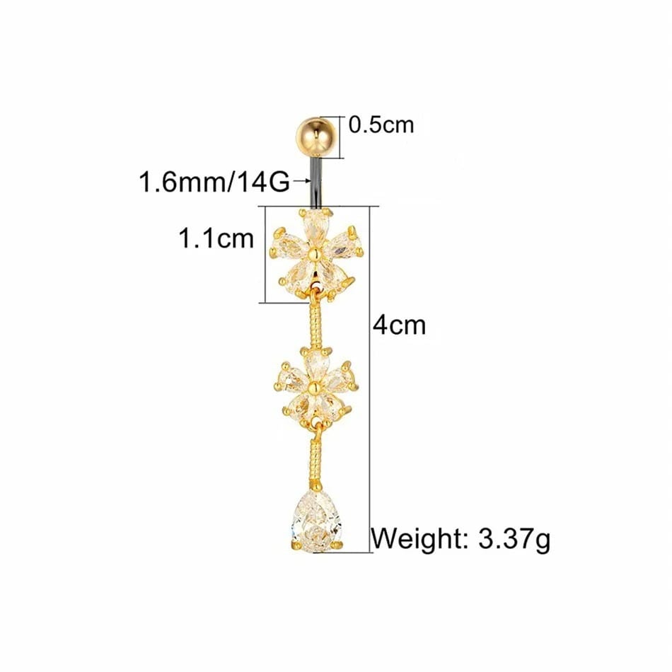 〈2Color〉ボディピアス 2連フラワー ドロップ 揺れる 贅沢ジュエル M3 -0322