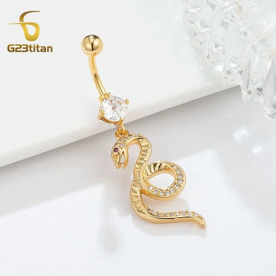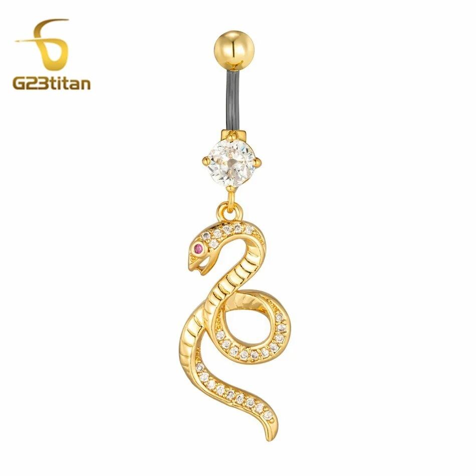 エッジの効いた大人ギャルスタイルに欠かせない、スネークモチーフのへそピアスです。
