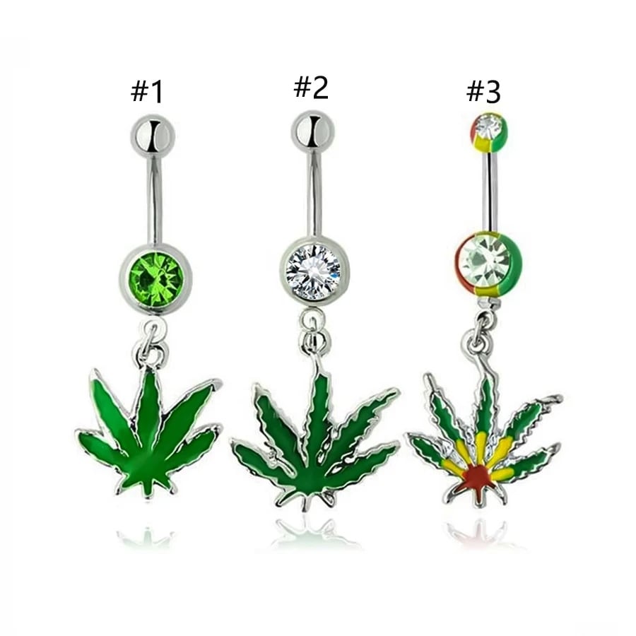 エッジの効いたリーフ(大麻草)デザインが目を惹く、ストリート感溢れるへそピアスです。