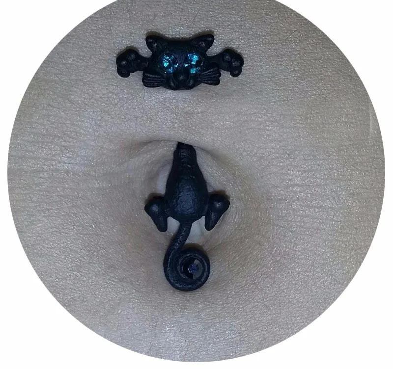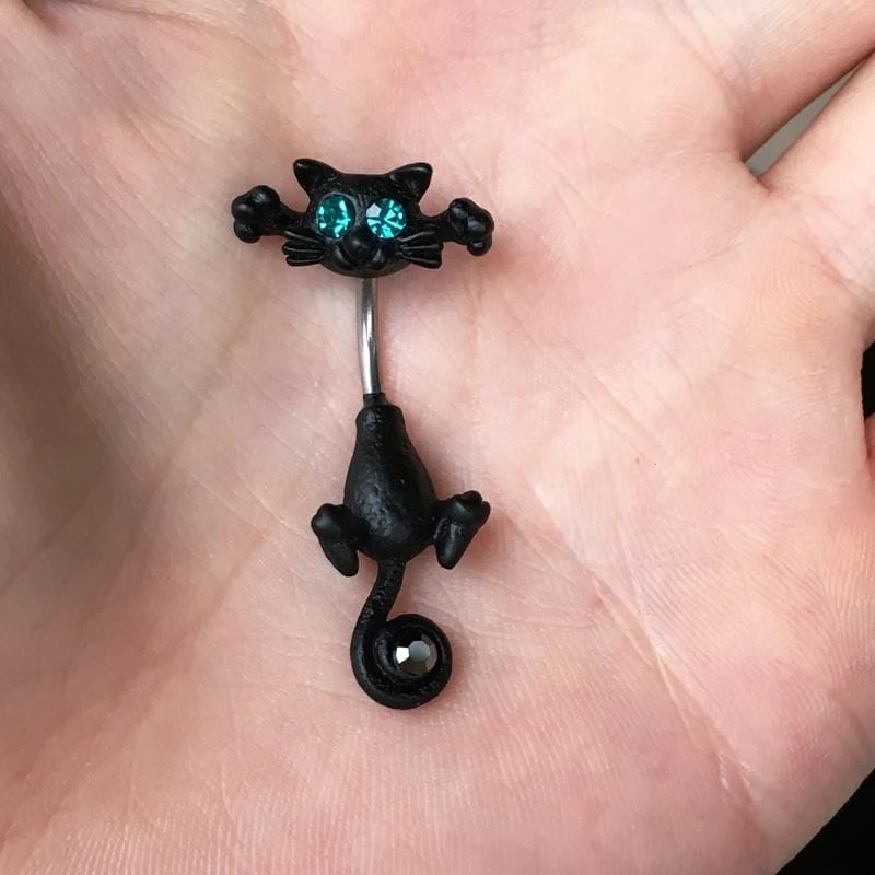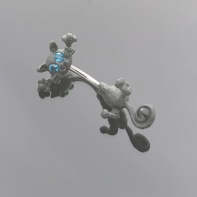 まるで猫がおへそにギュッとしがみついているような、ユニークな3Dデザインのへそピアスが登場。
