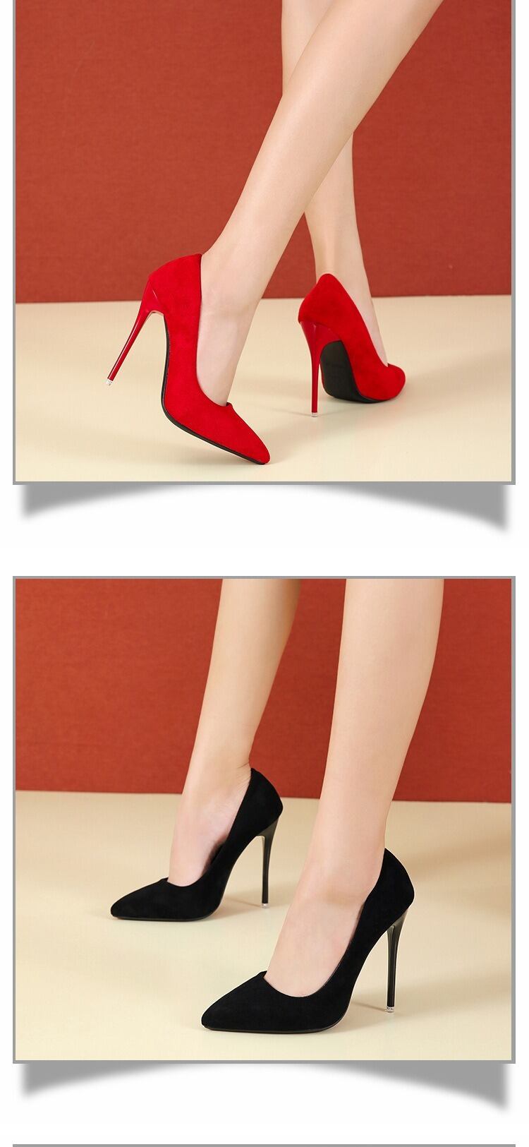 〈2Color〉艶感スエード×ピンヒール ポインテッドパンプス M3 -0386