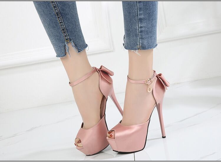 バックのビッグリボンが目を引く、強さと色気を兼ね備えたハイヒールサンダルです。