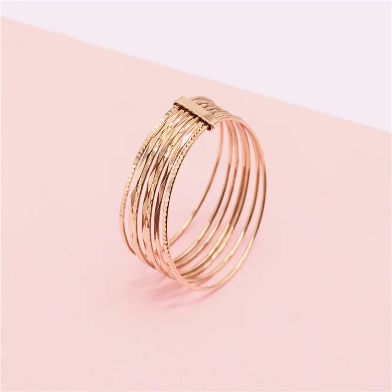 極細のラインを絶妙なバランスで重ね合わせた、レイヤード風のデザインリング。