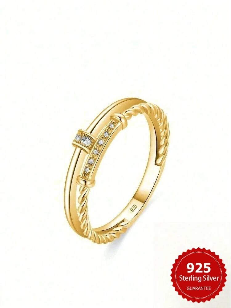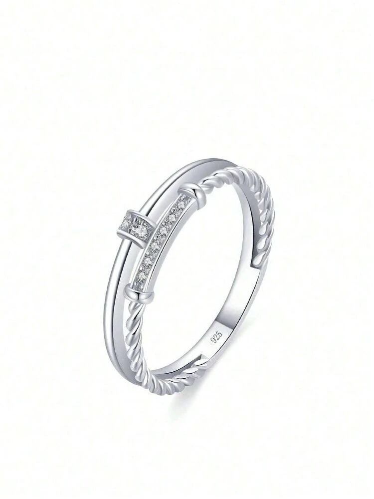 〈2Color〉2連風ジルコニア ツイストラインリング M3 -0416