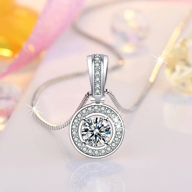 2段サークル 大粒ジルコニア ヘイロー ネックレスM3 -0425